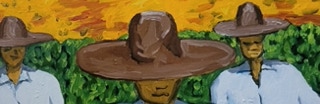 "In style and subject matter Weston Riffle's work brings to mind the social realism movement that had its heyday in America and Mexico between the two world wars-a realism that both celebrated working people and critiqued the socio-economic and political forces that create inequality. At first glance, the brilliantly colored paintings of farm workers and fishermen seem to be simply celebrations of California rural life- and they certainly are that -until we notice the hidden faces and the repetition of identical figures. It is as if the farm workers in their anonymity are just so many interchangeable parts in a larger machine. Or perhaps the repetitive nature of their back-breaking work has rubbed the individuality out of them. The political makes itself known through the personal."